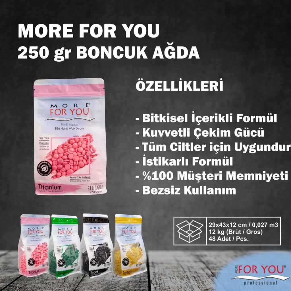 Moreforyou ağda boncuk 250gr Bitkisel formül Kuvvetli çekim gücü Tüm ciltler için uygun İstikrarlı formül %100 Müşteri memnuniyeti Bezsiz kullanım